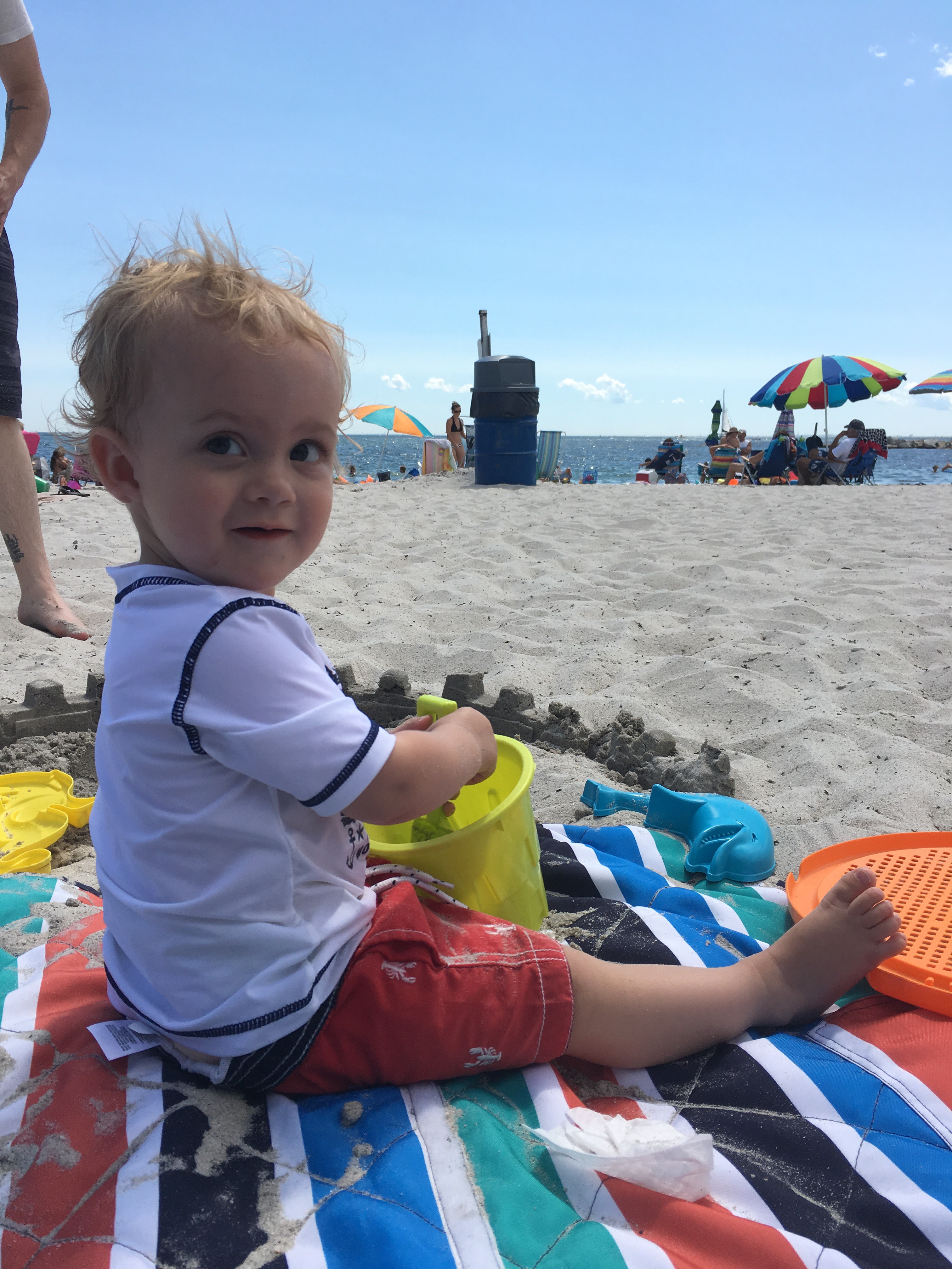 Since West was only 5/6 months old this time last year, this summer was when the real fun began. Road trips, overnight stays, and outdoor adventures are certainly more interesting with a hyperactive toddler. Everything you do, big or small, turns into a production. Going away for the weekend? Give me a week to pack…and that’s just Weston’s suitcase! Headed to the beach? Sure, let me just grab my 4 beach bags filled with miscellaneous items, 2 blankets, plenty of sand toys, a full cooler, extra sunblock (we’re so Irish) and one huge tent to cover all of us. Oh, and where’s the kid? Yeah…be right there. Thankfully we got blessed with an awesome little boy that loves to see new places and explore, so traveling with him is a breeze. Once you finally get to your destination though, you can sit back and enjoy the benefits of your hard work…………OR you can walk back and forth to the ocean 27 times to fill up pails of water for your demanding son, because he refuses to stand/walk on the sand. To be fair – what’s a sandcastle without a mote?!